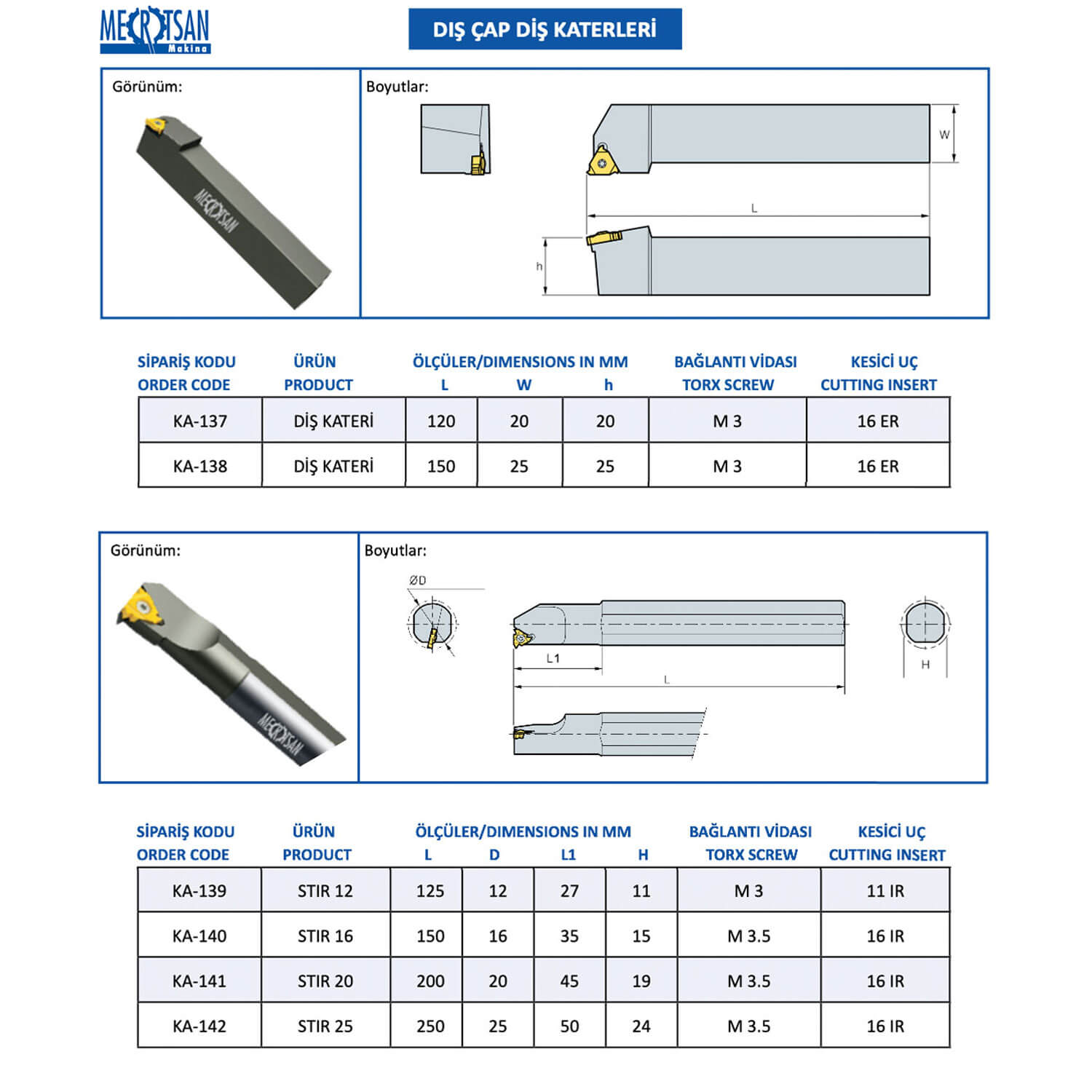 - Torna tezgahlarında ürünün dış çapına diş çekmek için kullanılan katerlere Dış Çap Diş Kateri denir.